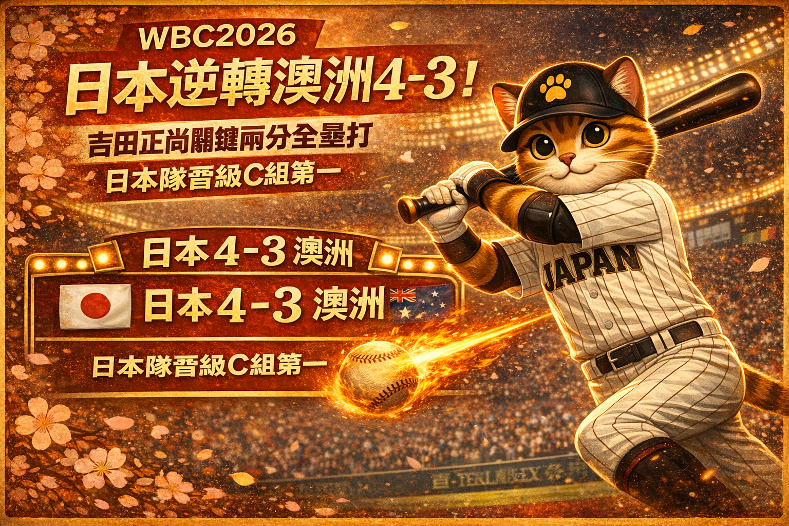 侍JAPAN以 4-3完成逆轉勝。
